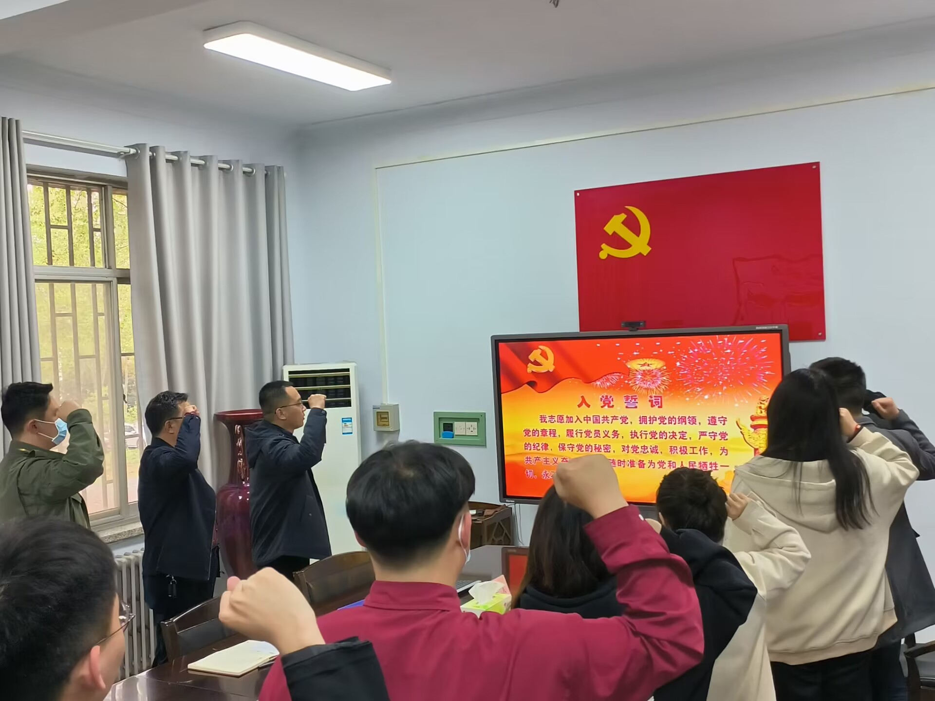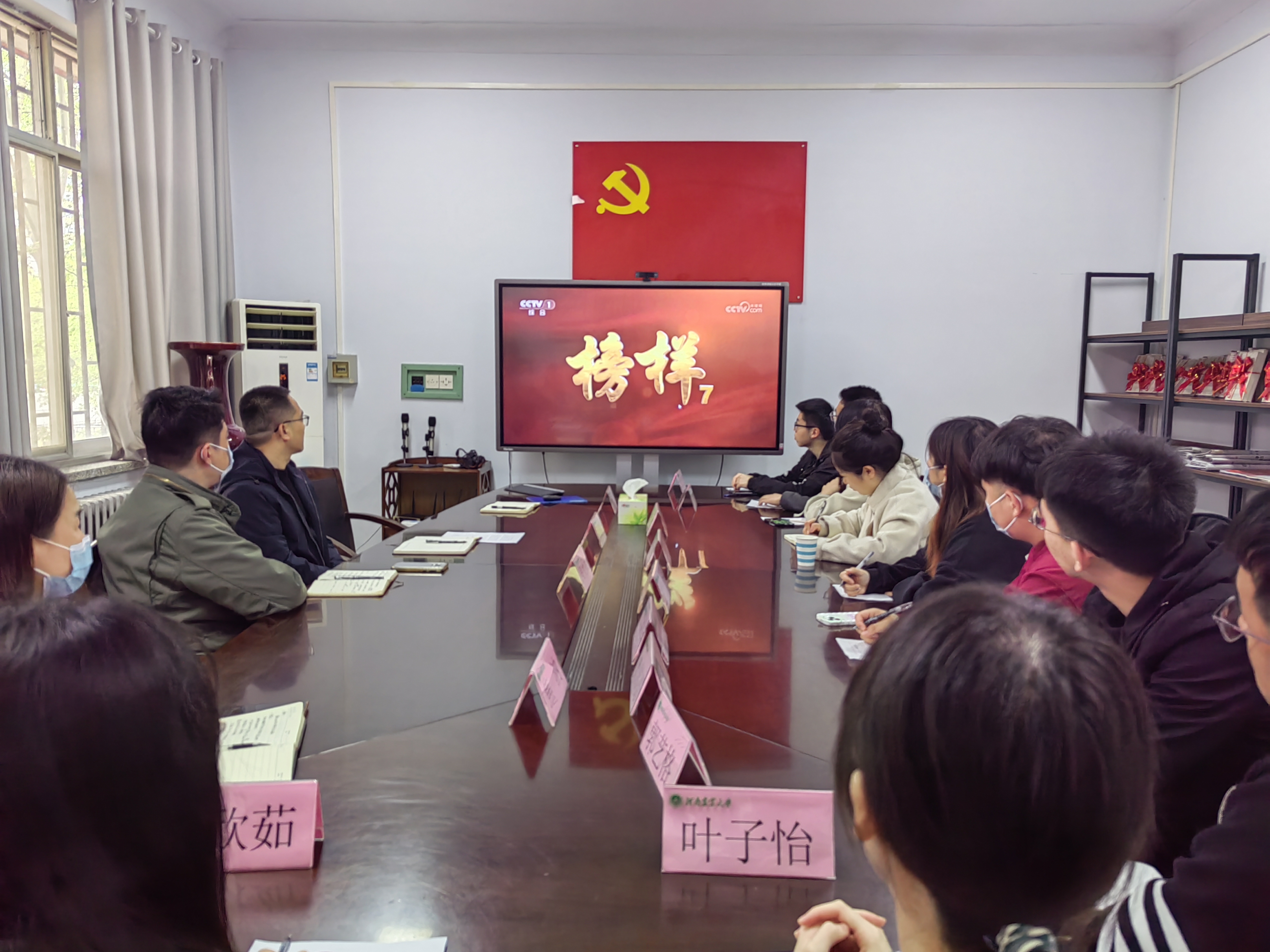 会议伊始,王建忠与张晶分别介绍各学院党支部成员及发展状况。随后,共建支部党员成员采取集中学习及座谈交流的形式观看《榜样7》专题节目,汲取榜样力量,感悟初心使命。节目播放完毕,王建忠强调:党员要坚守初心,以一个党员一面旗帜、一个支部一个堡垒的“四个一”方针为核心,坚定理想信念、践行榜样精神;与会老师围绕《榜样7》纷纷发言,并鼓励广大青年党员践行“顶天立地,躬身为民”、“以身许党、矢志为民”的精神,以实际行动全心全意为人民服务。与会学生党员纷纷表示:要以榜样为镜,向先进看齐,学习和弘扬新时代榜样精神,汲取内心榜样的强大正能量,将灵魂触动转化为实际行动,用奋斗擦亮共产党员的底色。最后,赠书仪式上王建忠带领全体成员宣读入党誓词。