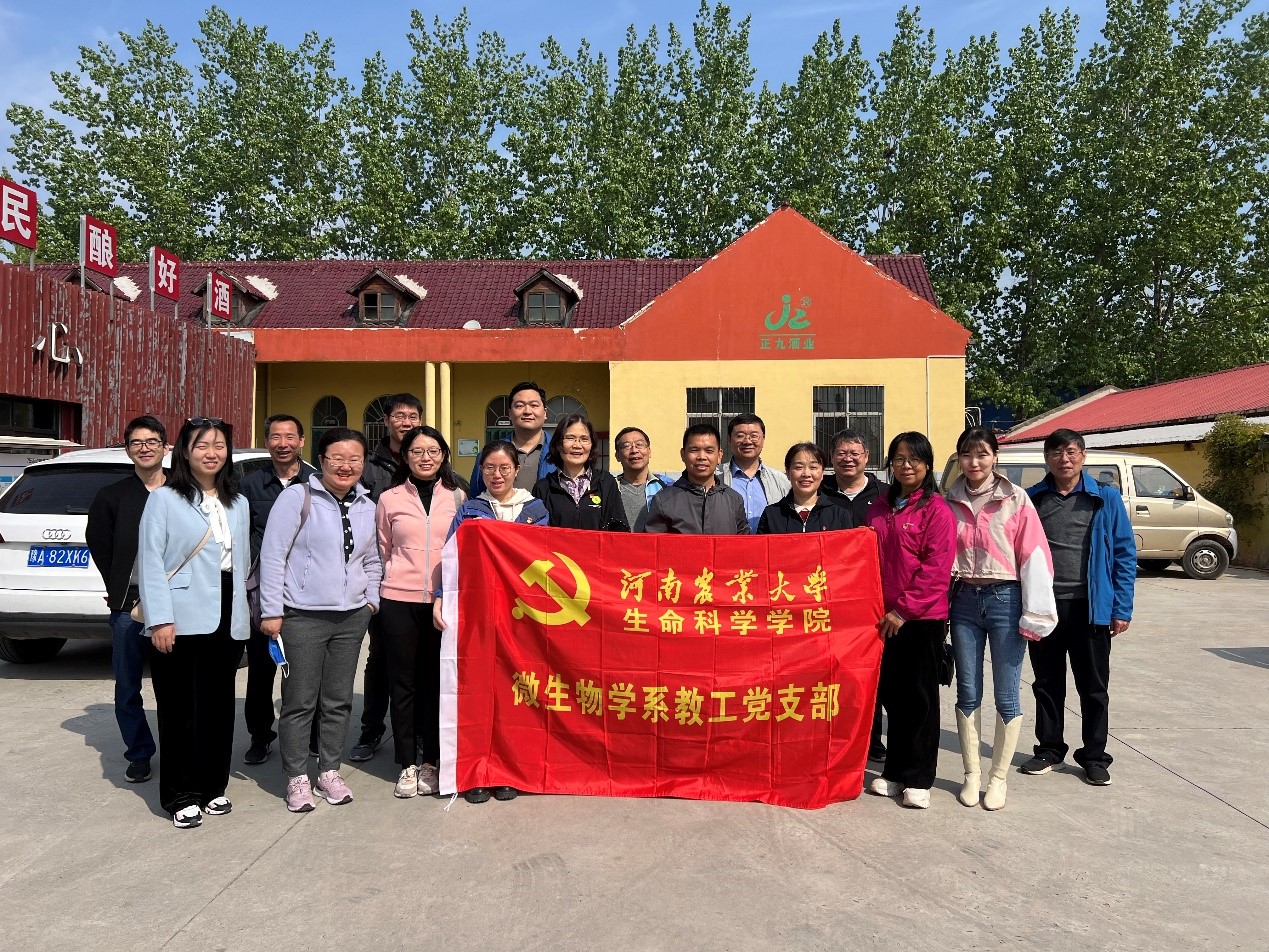 此外,支部党员还前往郑州正九酒业有限公司参观学习。郑州正九酒业有限公司成立于1994年,公司位于郑州市惠济区古荥镇黄河桥村。公司非常注重红色基因的保护和传承,坚持党建引领、聚力企业发展,一直秉持“宁失万两金,不做失信人”的经营理念,与樱花动漫 保持良好的合作关系,是樱花动漫 本科生毕业实习参观的定点单位。支部一行人受到了公司谭长芳总经理的热情接待,一起参观生产车间、酒窖,并对产品进行品鉴。支部党员充分利用微生物学专业知识,为公司产品的研发及公司未来的发展提出宝贵意见,得到谭总的充分肯定,双方初步达成了深度合作意向。