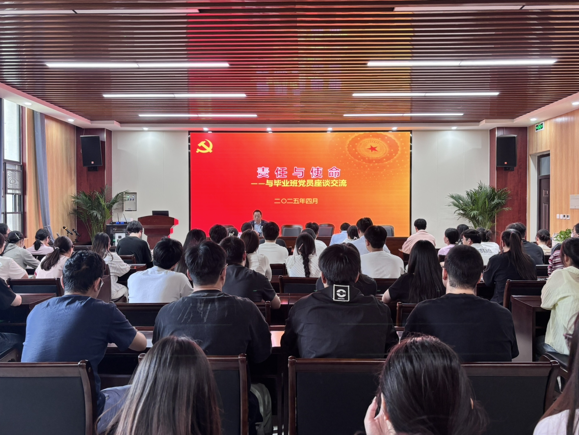 院党委书记刘国兵与毕业生党员进行座谈交流,并以《责任与使命》为题上专题党课。会上,刘国兵与毕业生党员交流探讨大学生活的收获及感受,并提问了部分党员关于党的基本理论知识等问题。刘国兵充分肯定了毕业生党员对党的基本理论知识的熟练掌握,并希望广大毕业生党员要铭记党员身份,在今后的学习和工作生活中勇担责任和使命,努力展现新时代大学生的青春风貌。