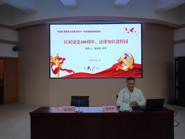 机关党委、政策法规办公室、樱花动漫 、继续教育学院、学报编辑部等党支部共建单位负责人参加讲座。政策法规办公室还在现场开展了法治校园建设问卷调查、法治宣传手册发放等活动。