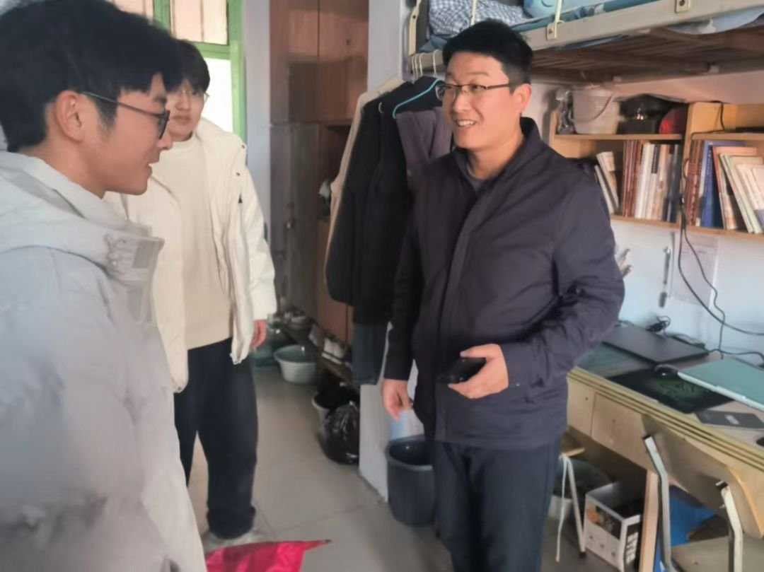 在文化路校区桃李园学生公寓,张世昌深入学生宿舍,与同学们沟通交流,了解实际生活情况,为学生送去棉被,代表学院给同学们送去了冬天的第一份温暖。