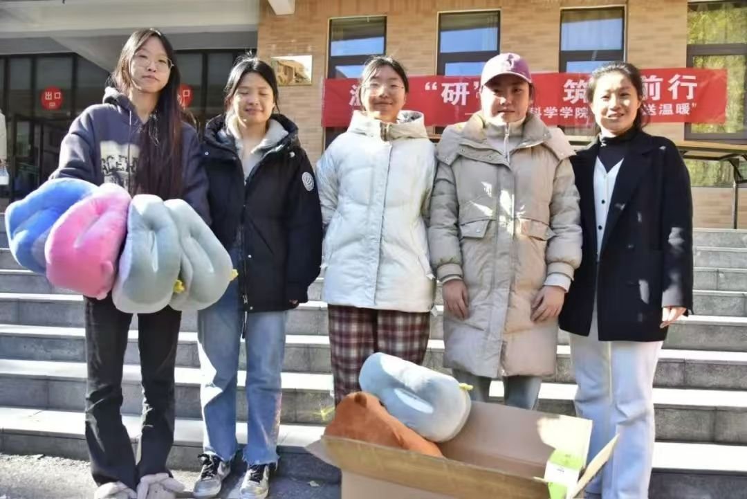 在龙子湖校区菊潭楼前,刘国兵一行为考研学生送上冬日祝福并致以亲切慰问。他高度赞扬同学们自备战考研以来的不懈努力与艰辛付出,鼓励大家坚定信念、稳步前行,在考场上稳定发挥,力争一战成硕。随后,学院领导与老师们为同学们发放精心准备的慰问物资,包括保暖棉被、暖手抱枕、舒适坐垫以及台灯等。同学们纷纷表示,一定不辜负学院领导老师的殷切关怀,全力以赴备战考试,以最佳状态迎接考研挑战,让青春不留下遗憾。