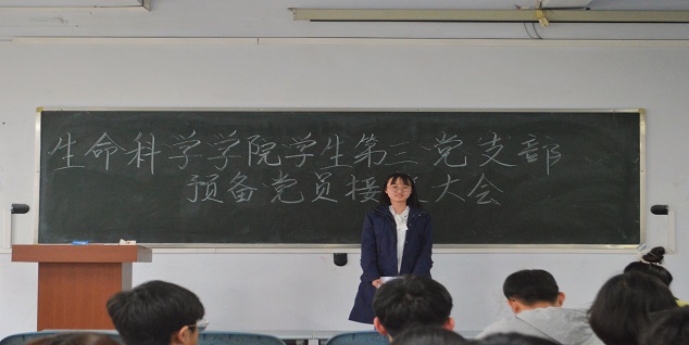 本次大会严格按照党组织接收预备党员程序进行。大会开始,由发展对象逐一宣读《入党志愿书》,汇报自身对党的认识、入党动机、在校表现等,向党组织表明了加入中国共产党的强烈愿望。接着由各发展对象入党介绍人向参会者介绍发展对象在考察期的政治思想、学习、工作等情况,并结合发展对象表现发表了自己的意见。随后大会进行讨论表决,认为本次发展对象基本符合党员条件,经与会正式党员采取举手投票方式对发展对象进行逐一表决后,一致决定同意接收本次所有发展对象成为中共预备党员。在党支部书记宣布大会决议后,新一批预备党员集体宣读入党誓词,纷纷表示会不忘初心跟党走,时刻用党员标准要求自己,争取早日正式加入中国共产党。大会最后,各党支部书记进行总结发言,并对新预备党员提出了要求与期望,希望新预备党员在日常的学习生活中严格要求自己,继续加强党的理论知识学习,不断提高党性修养,积极向优秀共产党员看齐。同时也对毕业班党员思想、行为提出规范要求,希望他们在大学最后的时间积极发挥党员模范带头作用,牢记共产党员的光荣使命。