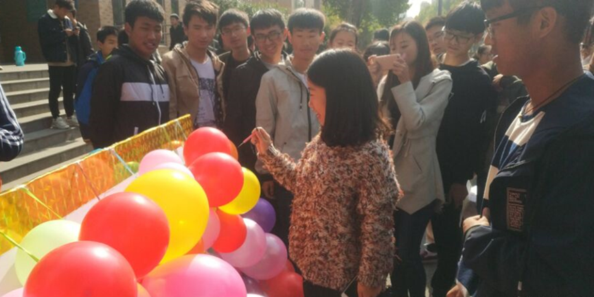 的女生的心愿放在气球中,由男生扎破并帮助完成心愿。此项活动为女生提供了便利,发展了男女生之间的友好关系,促进了同学们之间的交流与沟通。