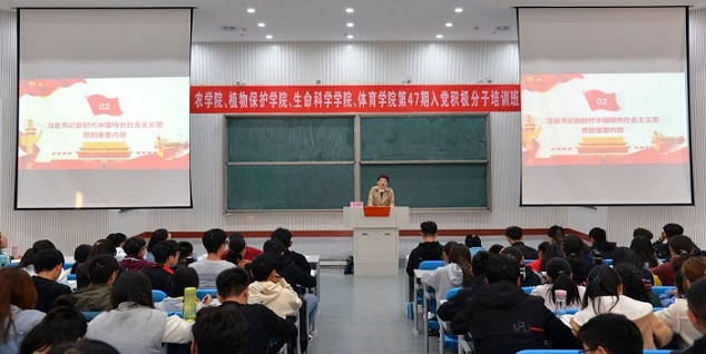 在本次学校组织进行的入党积极分子培训中,分别由农学院党委副书记吴旭静,牧医学院党委副书记牛娟,植物保护学院党委副书记王宏立,农学院党委组织员刘银银,马克思主义学院教师姚锡长、秦剑军、郭武轲为同学们讲授《习近平新时代中国特色社会主义思想、十九届四中全会精神》、《中国共产党的最高理想 与新时代奋斗目标》、《中国共产党的指导思想》、《中国共产党的组织原则、 纪律和作风》、《中国共产党历史和新中国史》、《中国共产党的性质和宗旨》 、《中国共产党党员的条件和发展程序》七个专题讲座。同时樱花动漫 根据此次集中培训安排,要求各位入党积极分子认真做好学习笔记,撰写心得体会,并进行结业考核等环节。
