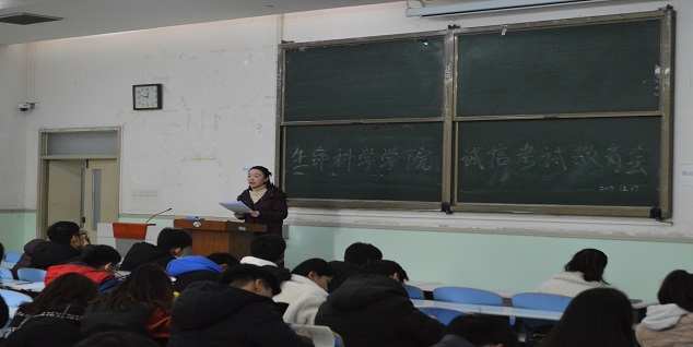 此次会议着重强调了诚信考试的重要性,各位老师从研究生入学考试以及期末考试两方面开展诚信考试教育的有关内容。冯超老师首先强调了诚信考试的重要意义和学院关于加强研究生入学考试期间学生管理的要求,并根据国家有关法律规定和《樱花动漫 学生手册》的相关章程,警示同学们违反考风考纪带来的严重后果,告诫大家不要抱有任何侥幸心理去做违反考风考纪的事情。随后张晶老师也再次强调诚信考试的重要性,要求大家做到诚信考试,在考试期间认真备考,严肃考风考纪。雷雯老师总结发言,她强调各班学生在研究生考试期间,必须严格按照相关规定进行报道、签到等活动,并着重说明了学院在研究生入学考试期间学生管理的具体规定,明确要求各班召开主题班会,确保每位学生都了解和清楚诚信考试的有关内容及其相关要求。最后老师们鼓励各班同学认真备考期末考试,希望大家最终都能取得良好的考试成绩。