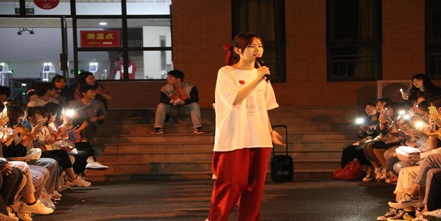 晚会开场,由新生助班们带来的《去年夏天》、《后来》等歌曲凭借优美的旋律和甜美的歌声,激起了同学们内心的阵阵热情。接着,2020级新生们依次呈现精彩的节目,为观众们呈现出了一场温馨而优雅的视听盛宴。由2020级新生薛子怡同学献出的《胡广生》,唱出了真情实感,如踏“人生之桥”;牛霖同学与宋丹雨同学组合献出的一首《小情歌》,宛如天籁般的声音,音清韵美,不绝于耳;《好久不见》、《微微》等歌曲在平和的旋律中响起,使现场弥漫着轻松而愉悦的气息。闪烁的灯光、热烈地呐喊、优美的歌曲将晚会的热潮推向了一波又一波的高峰。除了歌曲,晚会还不乏炫酷的街舞、快节奏的rap等,一次次地将现场气氛点燃。晚会最后,助班们组织2020级的同学们在信纸上写下了对祖国母亲的祝福与对家的思念。