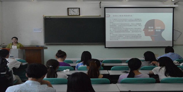 首先开展“百佳心理委员”评选,各位参选的心理委员自信十足,以演讲结合ppt展示的形式进行自我介绍,通过切身的工作经历与工作感想,生动形象地为大家展示了心理委员的职责、工作情况、个人感受及未来工作规划。同时,各位心理委员们不约而同地强调了在接下来的生活中,要积极关注班内同学的动态,以最务实的行动为班级负责,做最好的“心理气象员”。接着,由院团委辅导员张晶老师给16级、17级心理委员进行了“筑梦青春、追梦成长”为主题的大学生心理健康问题讲座,系统给大家讲解了心理健康标准、常见的心理问题分类,并结合具体案例给大家做分析,提出了心理健康预防措施和应对对策,让各位心理委员对心理健康工作有了更加清晰的认识和了解。最后,张晶老师指出:心理委员是构筑学院学生心理健康工作的一道防线,要求大家一定要发挥各自在班级建设、班级安全稳定上的重要性,发现问题应及时向班主任和辅导员沟通、汇报。本次大会在大家的热烈的掌声中圆满结束。