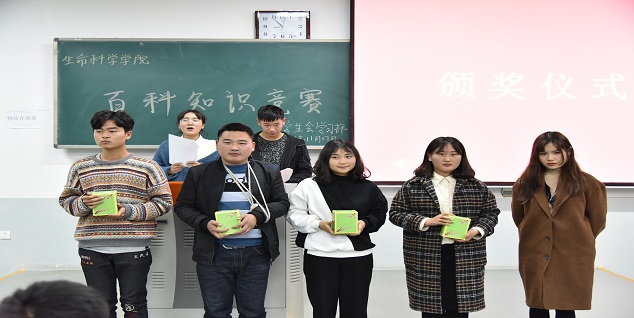 此次竞赛的主题是“领略世界多彩文化,遨游古今知识海洋”。各班同学积极报名,踊跃参加;每班派出四人组建为一支参赛队,樱花动漫 共组成十三支队伍参与比赛,本着“公平公正”的原则进行团体比赛,竞赛内容主要围绕中外文化、红色知识、科学技术、生活常识、体育竞技等方面展开。比赛分为预赛和决赛两个阶段,决赛按照“单枪匹马”、“背水一战”、“不进则退”、“险中求胜”四种比赛方式角逐最后的冠军。尤其是“不进则退”的抢答环节最为精彩,参赛选手们你争我抢,互不相让,激烈的交锋影响了了整个比赛会场的氛围。整个比赛过程中选手竞争激烈,但现场气氛融洽,活动过程中主持人对观众进行趣味知识问答,观众们踊跃参与,积极抢答。经过一系列的精彩角逐,最终生物科学三班获得一等奖,生物工程三班获得二等奖,生物技术四班获得三等奖,生物工程三班的滕沛媛获得MVP个人奖。此次百科知识竞赛在同学们的掌声中圆满结束。