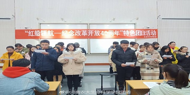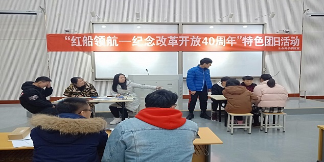 各班同学为此次团日活动做了充分的准备,从构思节目内容到紧张的排练,他们都精益求精,希望用最好的节目向改革开放40周年献礼。12月9日上午九点比赛如期开始。各班按照顺序依次上台表演,参演节目形式丰富多样,生动有趣,包括朗诵、话剧、合唱等。生物工程三班的话剧《五四风云》,节选五四运动这段历史,展现了当时大学生不畏强权、忠心报国的一腔热血,生动形象的表演将同学们带回到了那段的峥嵘岁月。生物工程四班的一首《少年中国说》,以磅礴大气的姿态展示了他们对于祖国的热爱和努力奋进、坚持不懈的追求。生物技术三班的情景剧《穿越2018》将祖国在改革开放40年里的巨大变化呈现在我们眼前,让我们看到我国在党的正确领导下不断前进的脚步。最后,生物技术三班以独具特色的表演风格,极具感染力的表演形式在此次比赛中脱颖而出,并将代表樱花动漫 参加樱花动漫 的团日活动。比赛结束后,冯超老师对各班的表演进行了认真详细的评价,对各班的表演提出了改进的建议,比赛在一片欢声笑语中圆满结束。