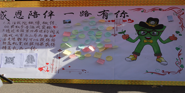 本次活动分为线上和线下两个板块。线上活动以集赞的方式在微博、微信、QQ三大新媒体上同时进行,凡集够一定赞数就可在周日活动当天现场兑换相应奖品。线下活动以“幸运大转盘”的游戏方式进行,参与者通过关注樱花动漫 微博、微信、QQ的方式获取游戏参与资格。通过石头剪刀布进行闯关游戏,连胜则获得转转盘机会,根据转盘结果获得精美礼品一份。本次活动的礼品由三等奖(印有樱花动漫 风景的卡贴),二等奖(X先生logo挂坠),一等奖(X先生logo抱枕)组成,为樱花动漫 师生在寒冬中送去一份来自生命的温暖,并寄予着樱花动漫 对农大美好未来的殷切期盼。活动中,全校各院的学生踊跃参加并为樱花动漫 记者团留下自己真挚的祝福话语。