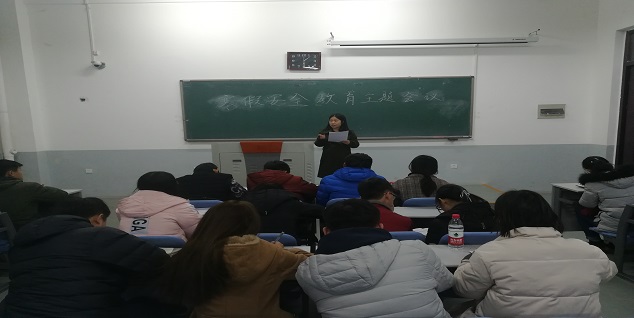首先,团委辅导员张晶向大家观看了“北京林业大学大四女生车祸4死5伤”新闻片段,说明了假期确保人身财产安全的重要性,要求班长支书认真负责地做好学生假期去向统计,重视假期安全问题。接着,她向大家提出四点要求:第一,寒假严禁组织学生打工,增强自我保护意识,防止陷入传销组织;第二,离校时锁好门窗,关闭水源、电源妥善保管好个人贵重物品并进行封闭登记;第三,寒假期间注意人身安全,外出游玩注意选择可靠安全交通工具,预防交通事故的发生,切实保护好自身安全;第四,要求学生按时返校,按时报到和注册,因特殊情况不能按时返校的必须履行请假手续。随后向各班长支书下发了17级新生寒假离校安全通知单,并要求宿舍长作为第一责任人,确保宿舍安全之后放可离校。最后,要求17级各班尽快开展寒假安全教育的主题班会,使班级同学牢固树立“安全第一”的思想。