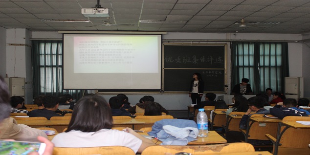本次评选大会共有三个年级23个班级参与竞选。大会开始后,主持人首先对此次比赛规则及流程进行了简单的介绍,接着宣布评选大会正式开始。各个参选班级按照事先的抽签顺序依次进行了PPT展示和班级介绍讲演,各班代表讲评PPT的方式各不相同,或生动活泼、或慷慨激昂。PPT内容主要包含各班学风建设、班风建设、社会实践活动及班级新媒体的发展情况等,各班代表们积极地向评委和观众展示本班级团结进取的精神,积极向上的学习氛围,生动活泼的同学情谊。其中15级生物科学二班和生物科学三班的同学们录制了视频为本班加油;15级生物工程五班出现的学霸寝室令人印象深刻;15级生物技术及应用专业一班涌现出一大批先进个人,让评委对樱花动漫 专科生的表现赞不绝口。各参选班级讲评完毕后,团委老师对参选班级体进行了点评,对表现优秀的班级提出了表扬,并对学生班集体的发展提出了希望和勉励。