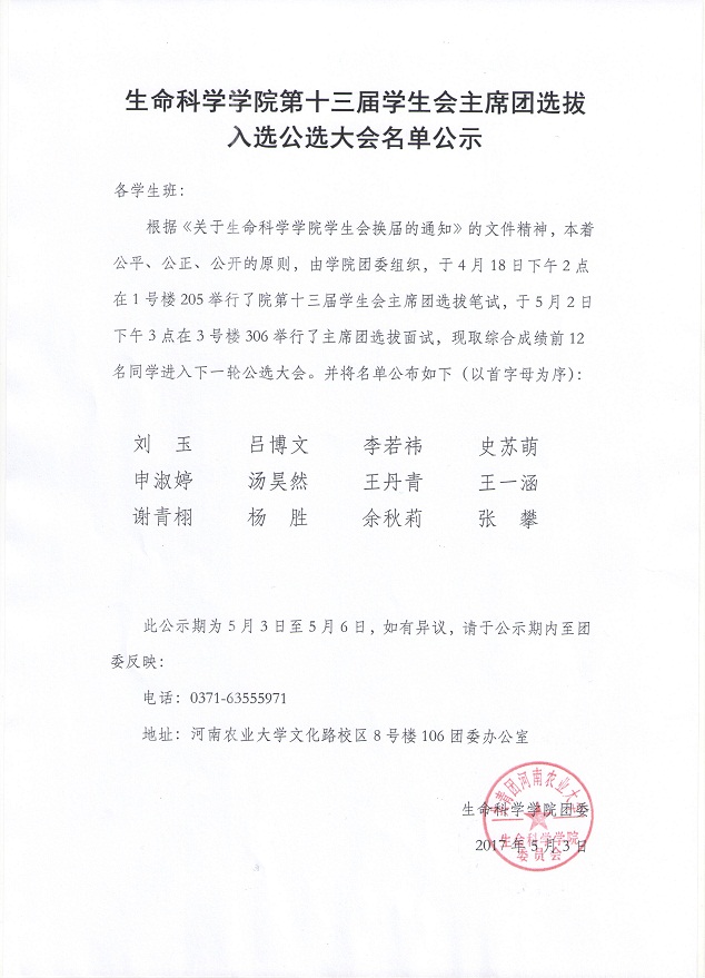 樱花动漫 第十三届学生会主席团选拔入选公选大会名单公示