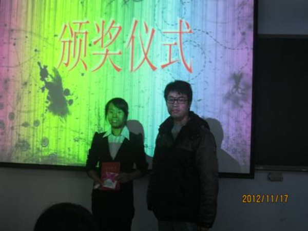 在党的十八大胜利召开的背景下。为了充分表达大学生对时事的关注,也为了提高同学们的口才。学习部于2012年11月17日14点在推广楼410隆重举行了以“喜迎十八大,青春放光华”为主题的新生演讲比赛。