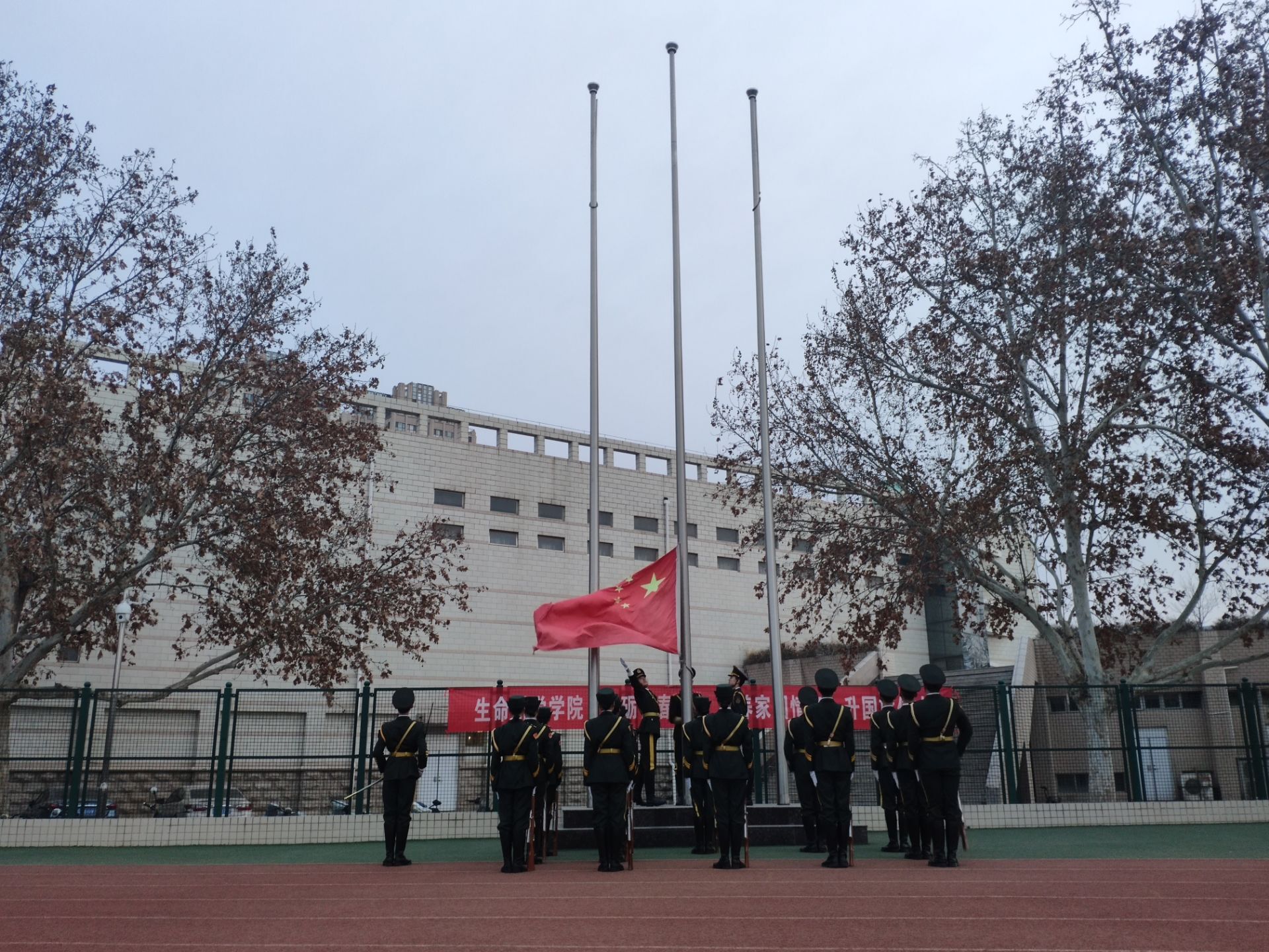 上午七点,升旗仪式准时开始。国旗护卫队队员身着正装,在庄重的国歌声中,五星红旗缓缓升起,全体师生迎接着朝阳共同奏唱国歌。院长吴建宇讲话,寄语全体学生,表示希望同学们树立远大理想,坚定理想信念,在新学期开始时做好学习规划,积极面对挑战,传承樱花动漫 勤勉好学的优良学风,不负时代不负韶华。院第四届青马班学生黄以琳作为学生代表发言,她对全体同学发出号召,希望大家能够端正学习态度,珍惜时光,用现在驾驭未来。仪式结束后,全体师生合唱校歌《绿色颂》并进行横幅签字活动,本次升旗仪式到此结束。