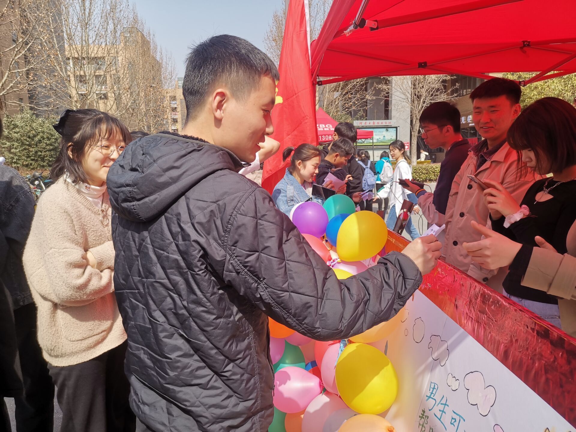 本次女生节活动分为“心愿气球”和“知识问答”两个环节。在“心愿气球”活动中,樱花动漫 女生提前将姓名、心愿及联系方式写进纸条并装进气球中,由学生会成员粘贴于展板上。活动当天,心愿墙展板在龙子湖校区第一餐厅广场和文化路校区八号楼门前展出,吸引不少学生驻足观看。男生随机抽取气球,负责实现女生的愿望,他们化身“暖男”、“绅士”,为女生打水、买饭、取快递等等,女生们纷纷表示,“心愿气球”活动给她们带来了无限的惊喜与感动。在一个个气球被戳破的同时,知识问答环节也在如火如荼地进行。学生会成员提前打印北京冬奥会、党史、团史及“三品”主题教育有关题目并放入纸箱,同学们抽取题目并现场作答。同学们答题热情高涨,现场气氛十分热烈。活动期间,男生们纷纷为樱花动漫 女生送上温情的节日祝福,在一片欢声笑语中,本次女生节系列活动圆满结束。