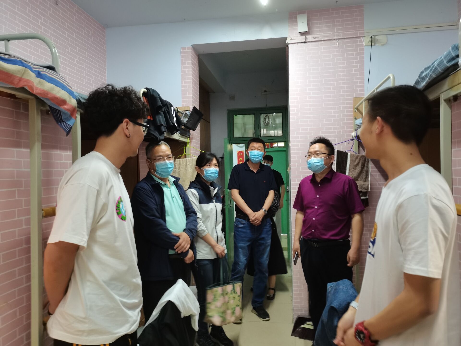 院领导一行先后走访2018级与2019级学生宿舍,走访期间,就学生心理健康、生活习惯、学习成绩以及考研计划等方面进行了解,针对视察过程中发现的安全问题提出合理建议,并嘱咐同学们疫情期间要注重自身防护与宿舍用电安全,减少聚集,防范于未然。视察结束后,各领导总结讲话,要求学院各班班长开展疫情防控班会活动,及时了解疫情防控封校期间学生心理状况并及时反馈,促进学生心理健康。