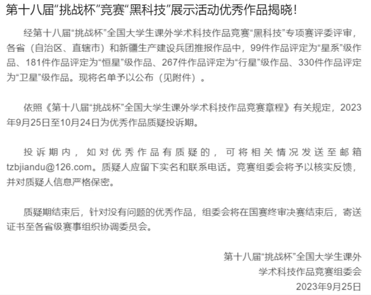 据悉,本届“挑战杯”全国大学生课外学术科技作品竞赛由共青团中央、中国科协、教育部、中国社会科学院、全国学联、贵州省政府共同主办,围绕“创新、开放、协同、引领”的工作理念,以“科创筑梦,挑战未来”为主题,吸引到全国2000多所高校、40余万作品,250多万学生参赛。