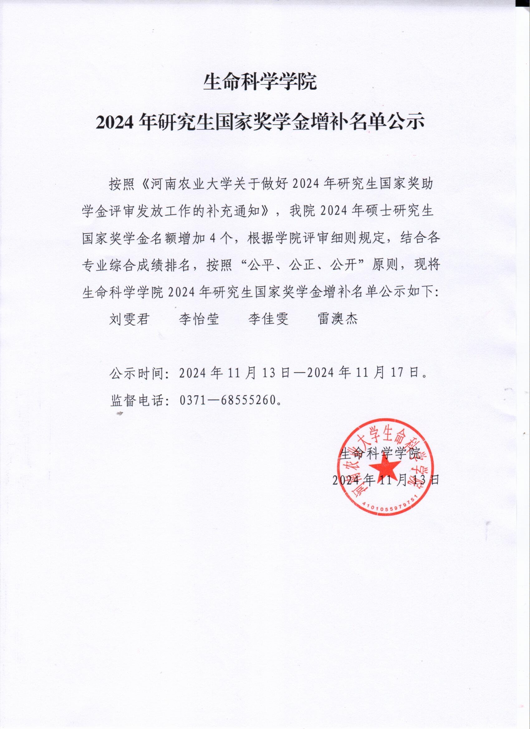 樱花动漫 2024年研究生国家奖学金增补名单公示