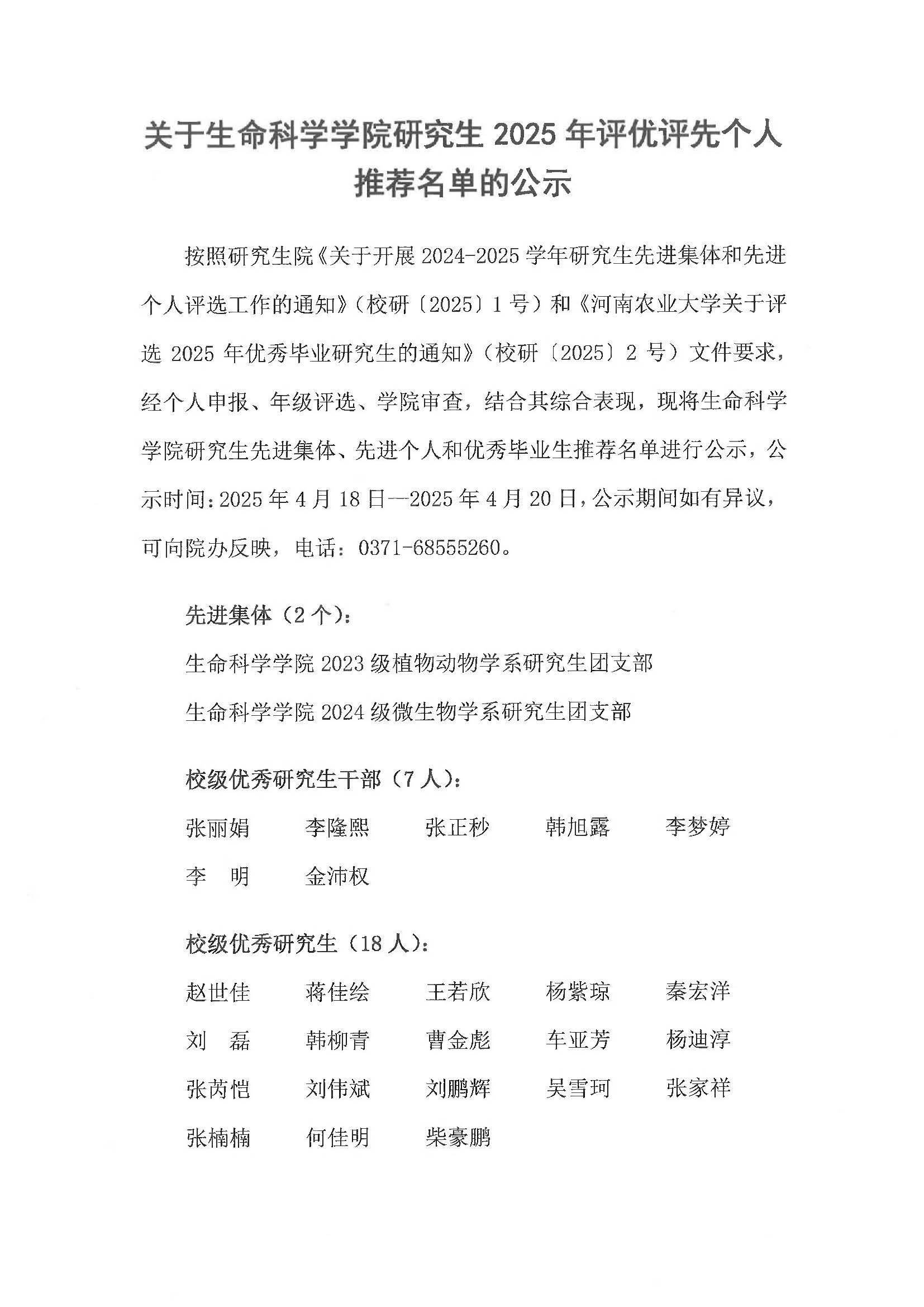 关于樱花动漫 研究生2025年评优评先个人推荐名单的公示