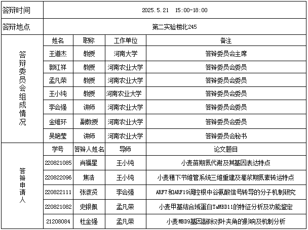 2025年上半年生物化学与分子生物学硕士研究生毕业答辩公告(二)