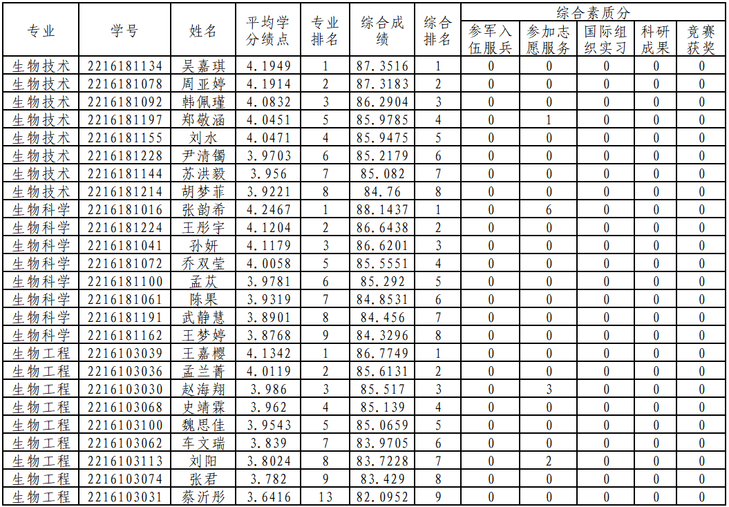 生命学院2026年推荐优秀应届本科毕业生免试攻读研究生公示