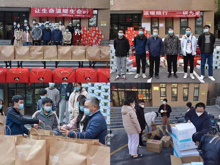 11月13日,学院为所有留校考研学生发放了棉被、毛毯、暖水壶等御寒物资,面包、牛奶、文具袋等考研大礼包为考研学生送去温暖。 11月24日龙子湖校区疫情多点散发,在院党委书记张朝阳和院长吴建宇的组织下,先后有12位青年教师加入志愿服务团队,志愿者老师克服困难,吃住在实验室、办公室打地铺,每日为发热隔离学生配餐送药。12月初,部分学生出现高烧现象,布洛芬、连花清瘟等药品紧缺,学院组织全院教师捐献药品,桃李园备用药品也于第一时间转运至龙子湖校区,同时学院积极联系社会药源,确保药品供应。12月7日,学院积极协调低年级宿舍、实验室等,安排返校考研学生的隔离和生活保障。从龙子湖疫情爆发到考研前夕,学院克服重重困难,多次调配购买物资,向留校学生发放N95口罩、酒精、消毒湿巾等防护用品,发放卫生纸、牙膏、洗发水等生活用品,全力保障学生生活物资供应。