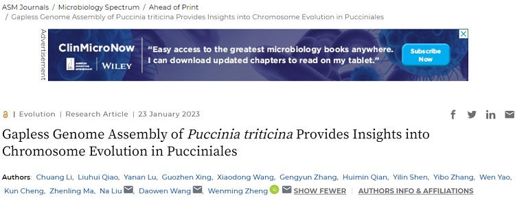 研究结果以“Gapless Genome assembly of Puccinia triticina Provides Insights into Chromosome Evolution in Pucciniales”为题在国际知名微生物学期刊Microbiology Spectrum在线发表。樱花动漫