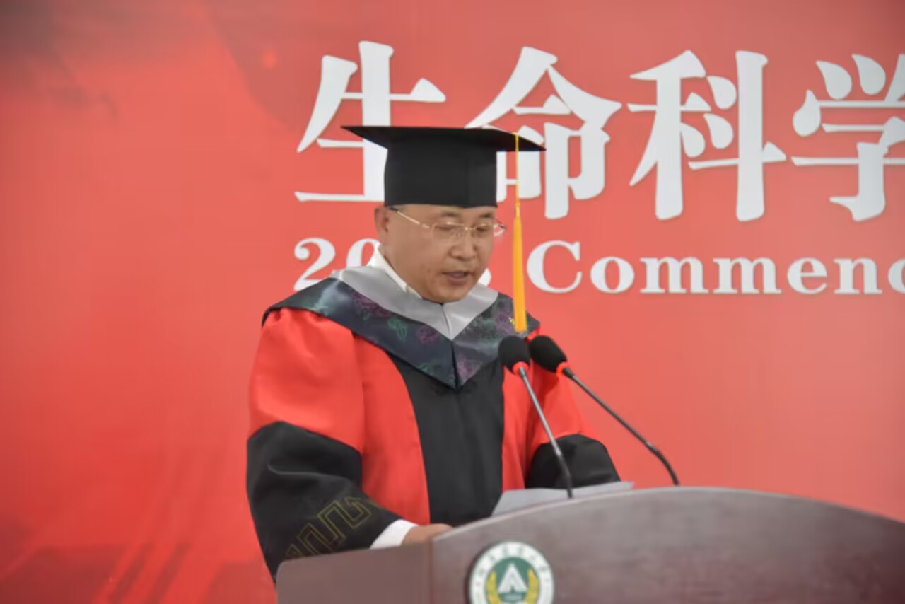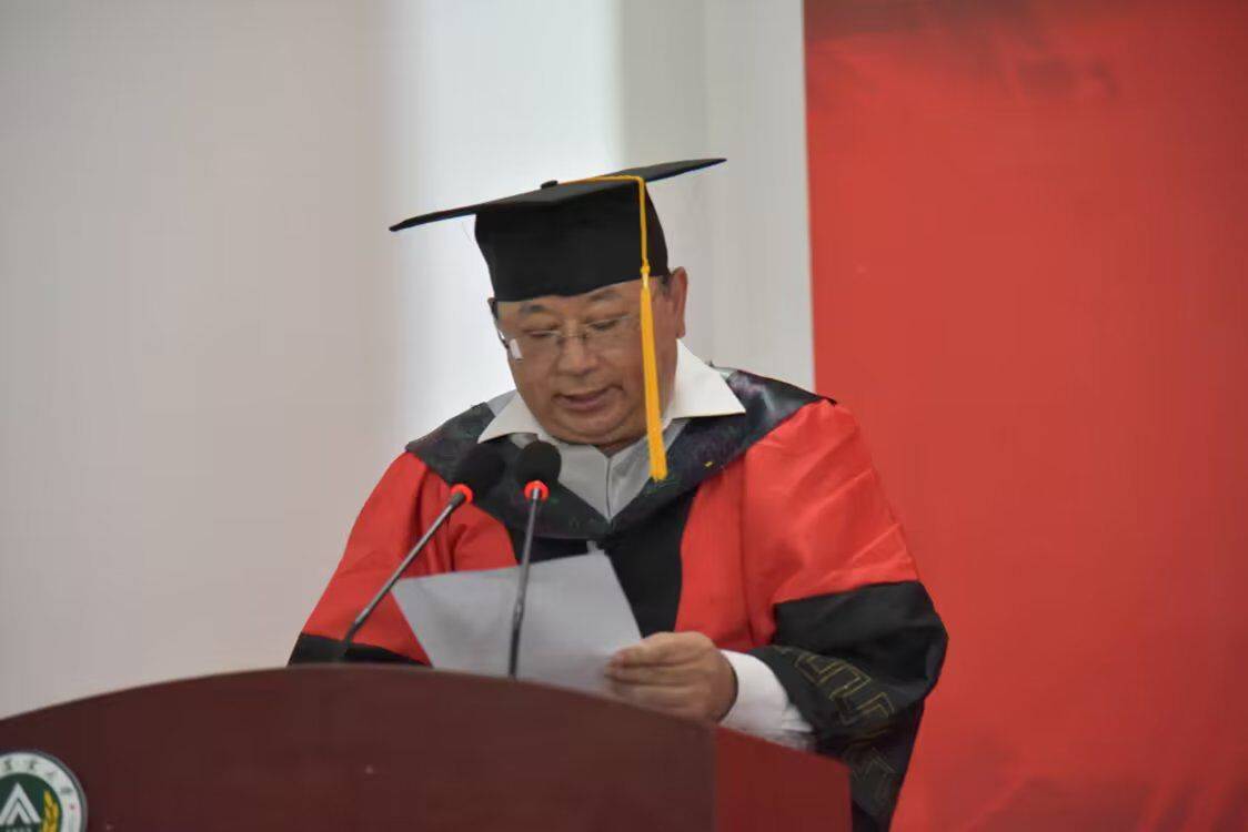 毕业研究生代表刘子豪同学发言,在农大学习生活的经历始终是他一生最可宝贵的财富和不竭的动力源泉,激励着他在平凡中坚守初心、砥砺奋进。他希望毕业生们坚持梦想、不忘初心,注重细节、精益求精,勇挑重担、心怀家国。历经坎坷,耐得住平凡寂寞,收获成功,亦能够永葆初心。最后他号召全体毕业生:“让我们相约下一个十年、二十年校庆再相见时,以优异的成绩骄傲地向母校报告!”