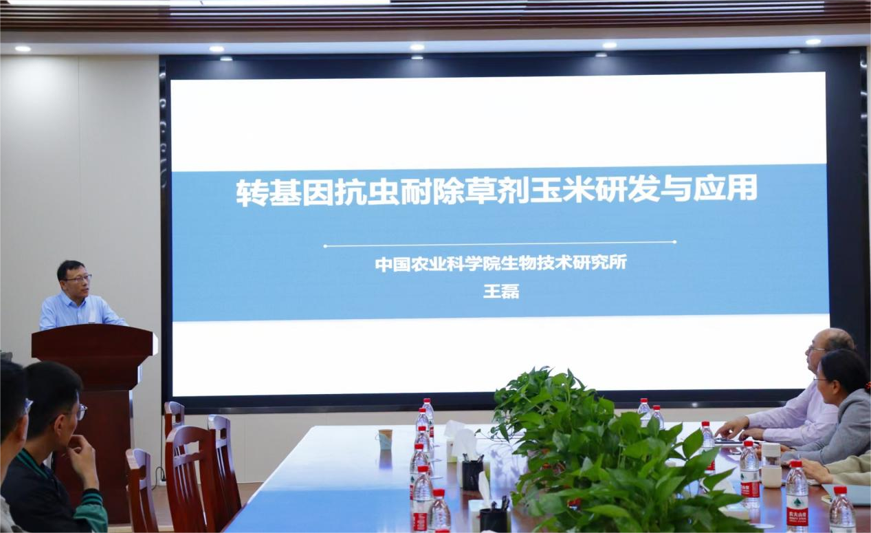 王磊以《转基因抗虫耐除草剂玉米研发与应用》为题,介绍了玉米转基因品种的评审过程,期间工作包括转基因的产品创制、插入基因及插入位点的检测、单基因插入及分离的确定、产品进入评价体系的各个关口流程、转基因产品的第三方小鼠喂养实验及所有品种的综合评定,经过层层实验、层层审批,最终通过品种的审定过程。整个过程中,即使技术成熟、实验顺利,也需要十年以上的时间。通过王老师的介绍,同学们对发展转基因产品的必要性、转基因品种发展的现状及转基因品种通过审定的严苛程序有了全面的理解。