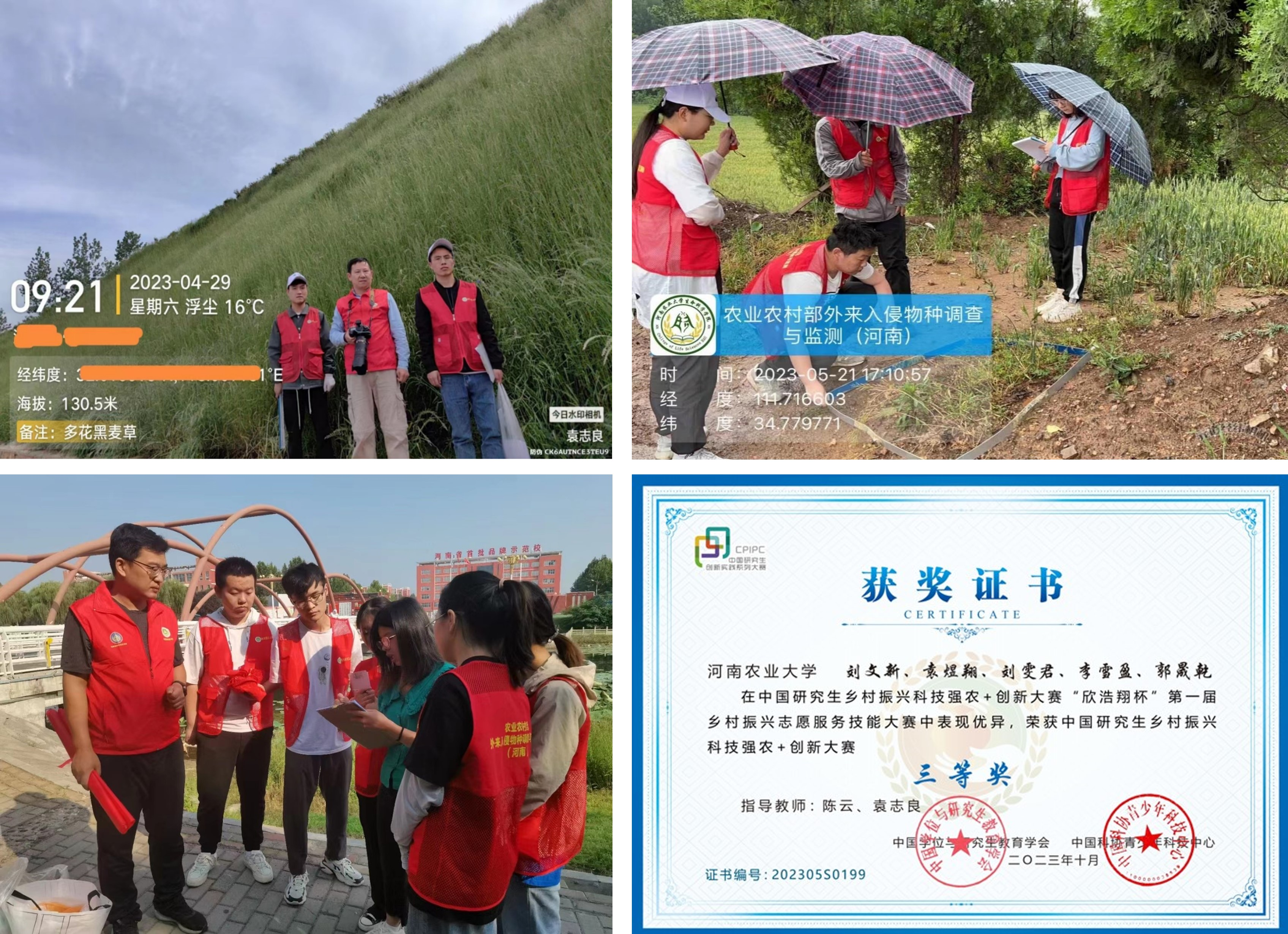 外来入侵物种普查工作是确保农业生态安全的重要举措,自2022年8月起樱花动漫 袁志良教授和陈云副教授指导的研究生团队实地调研了河南省各地区外来入侵植物的分布情况,进一步排查是否存在某种外来入侵植物占据了农作物的生存空间和养料的情况。同时深入农村基层开展志愿服务活动,向村民普及外来入侵植物的危害以及农田中常见的入侵植物。截止到2023年9月,调查范围涵盖80个区县,总计调查点位1446个,制作喜旱莲子草、垂序商陆、加拿大一枝黄花、皱果苋等外来入侵植物标本共315份,发出外来入侵植物宣传单5000余份。团队通过VCR视频演绎和幻灯片展示,从志愿服务的活动概况、活动意义、主要内容、实施方案、已有成效等方面分别展示了团队在服务乡村振兴中的总体情况。本项目得到了农业农村部“农业外来入侵物种发生危害及扩散风险等调查”和省生态环境厅“河南省生态环境厅外来入侵物种普查监测项目”的支持。