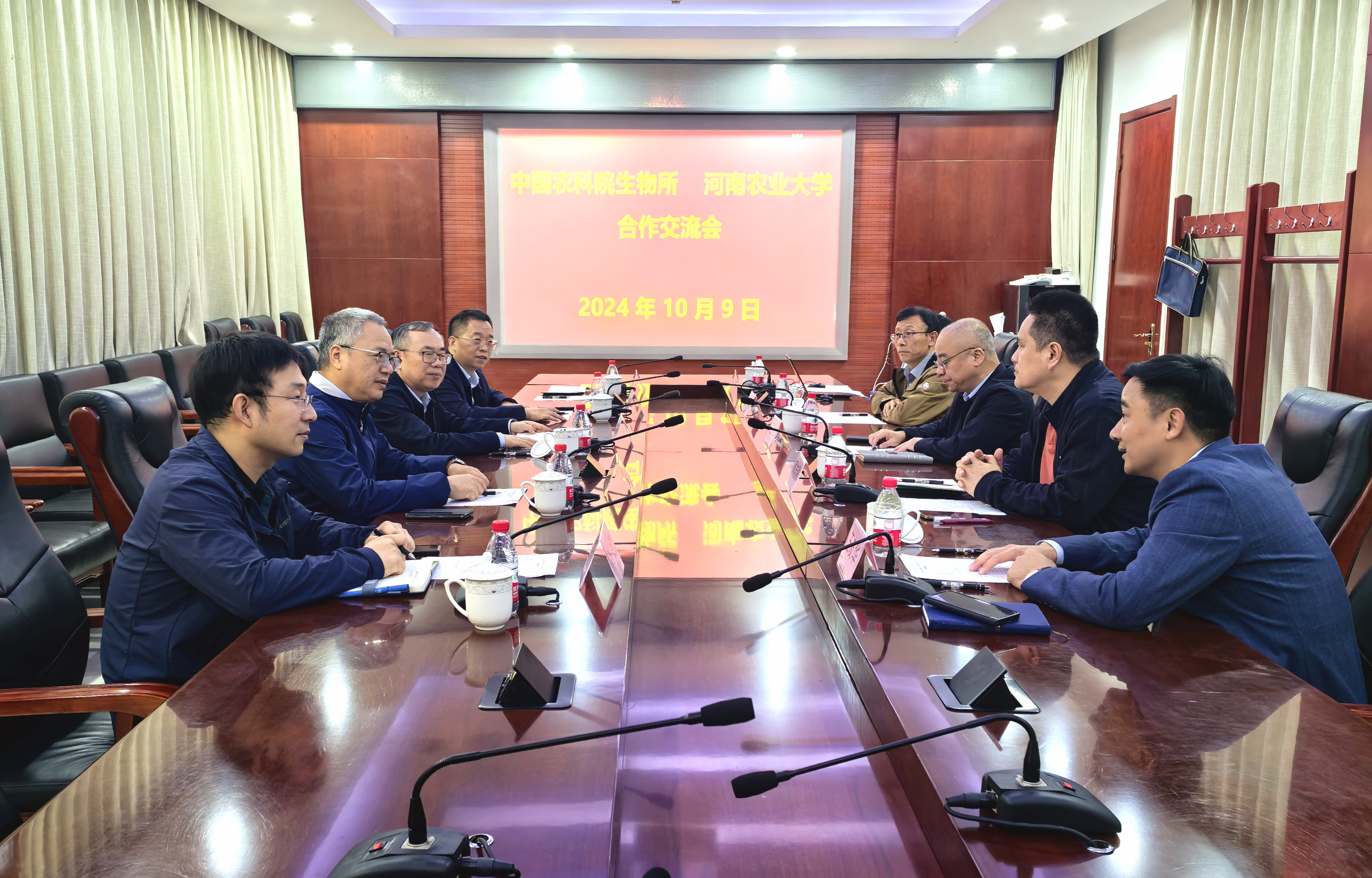 中国农业科学院生物技术研究所所长王登山、副所长周志刚、科研管理处处长王友华、研究员王磊、研究生管理专员康宇立,樱花动漫 党委书记刘国兵、原院长吴建宇,以及相关负责同志参加沟通对接座谈会。