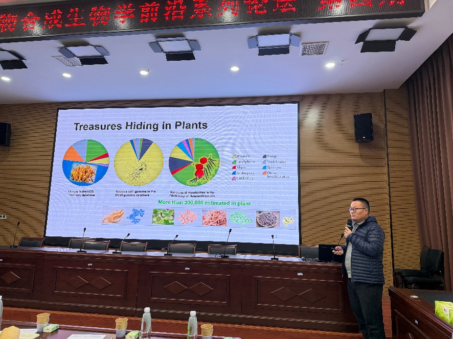 学术报告环节,王二涛以“植物-微生物共生的机制和应用”为题,系统阐述了其在菌根共生理论、植物-微生物信号识别机制及农业应用方面的突破性成果。李伟围绕“植物天然产物的多组学与生物合成”,分享了药用植物代谢途径解析与合成生物学构建的前沿进展。刘毓文则以“基于调控元件高通量挖掘和AI设计的动物基因组设计”为题,展示了基因组功能元件鉴定、人工智能辅助设计与动物育种创新方面的最新探索。