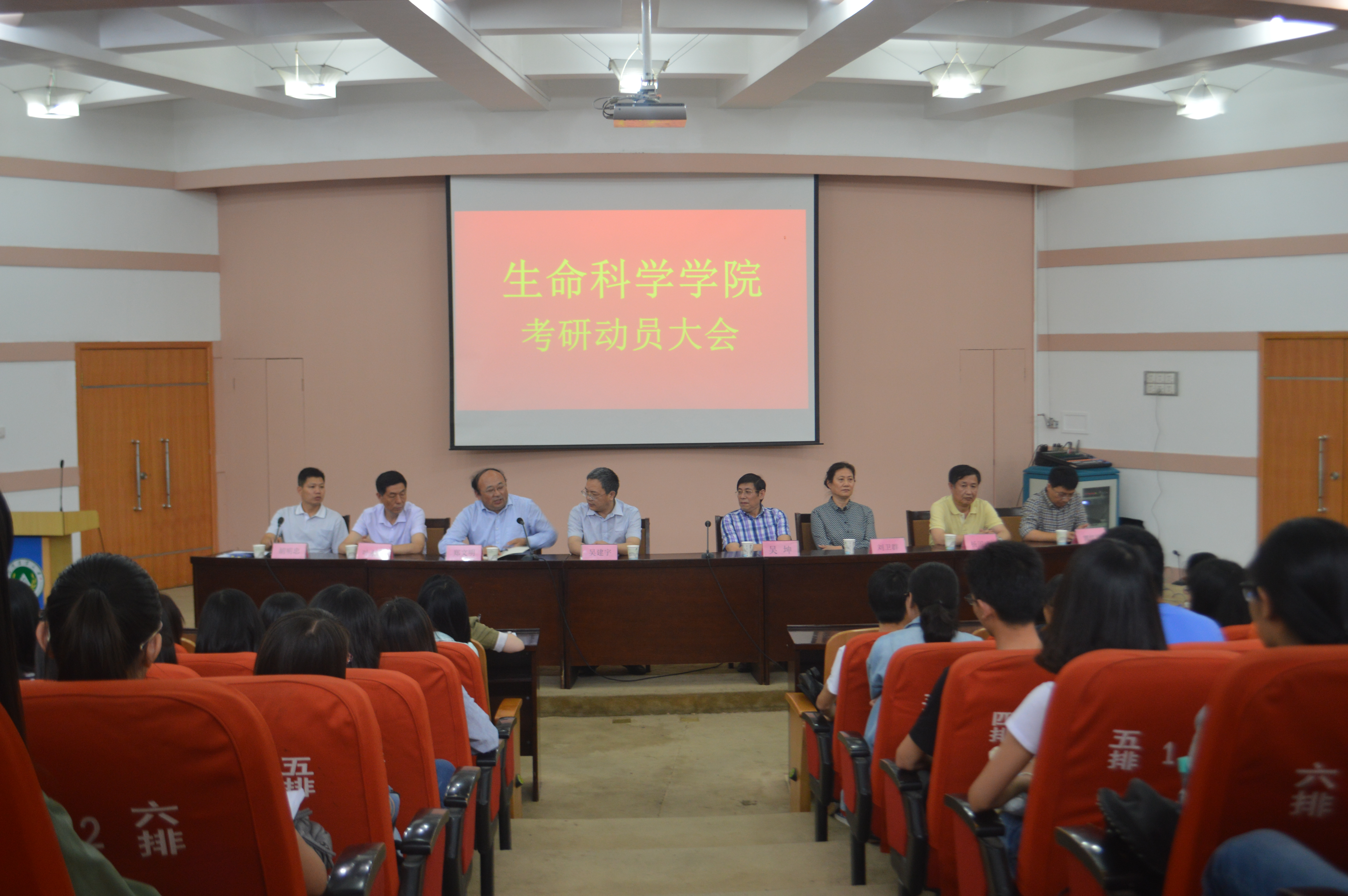 会上,郑文明首先从社会对高技术人才的需求和21世纪是生物的世纪,讲述了现在的学生为什么要考研。然后针对考研择校以及怎样准备考研给予了建议,鼓励大家报考名校的同时也要求同学们注重学科地位。紧接着,在今年考研中取得辉煌成绩的周国丽和王思琦同学依次在大会上分享了她们考研成功的经验。随后,学院各学科带头人分别从各自的研究领域进行详细的讲述,在同学们选择考研的专业方向上提供帮助。最后,吴建宇给予考研同学鼓励,强调考研是人生的一次重大决定,一定要下定决心,坚持到底,并提出选择考到国外也是不错的选择,提倡同学们跟着老师做课题,申请国外学校时也有优势。会后的答疑环节,吴建宇和郭红祥分别针对同学们在考研准备过程中的困惑和问题进行了解答。