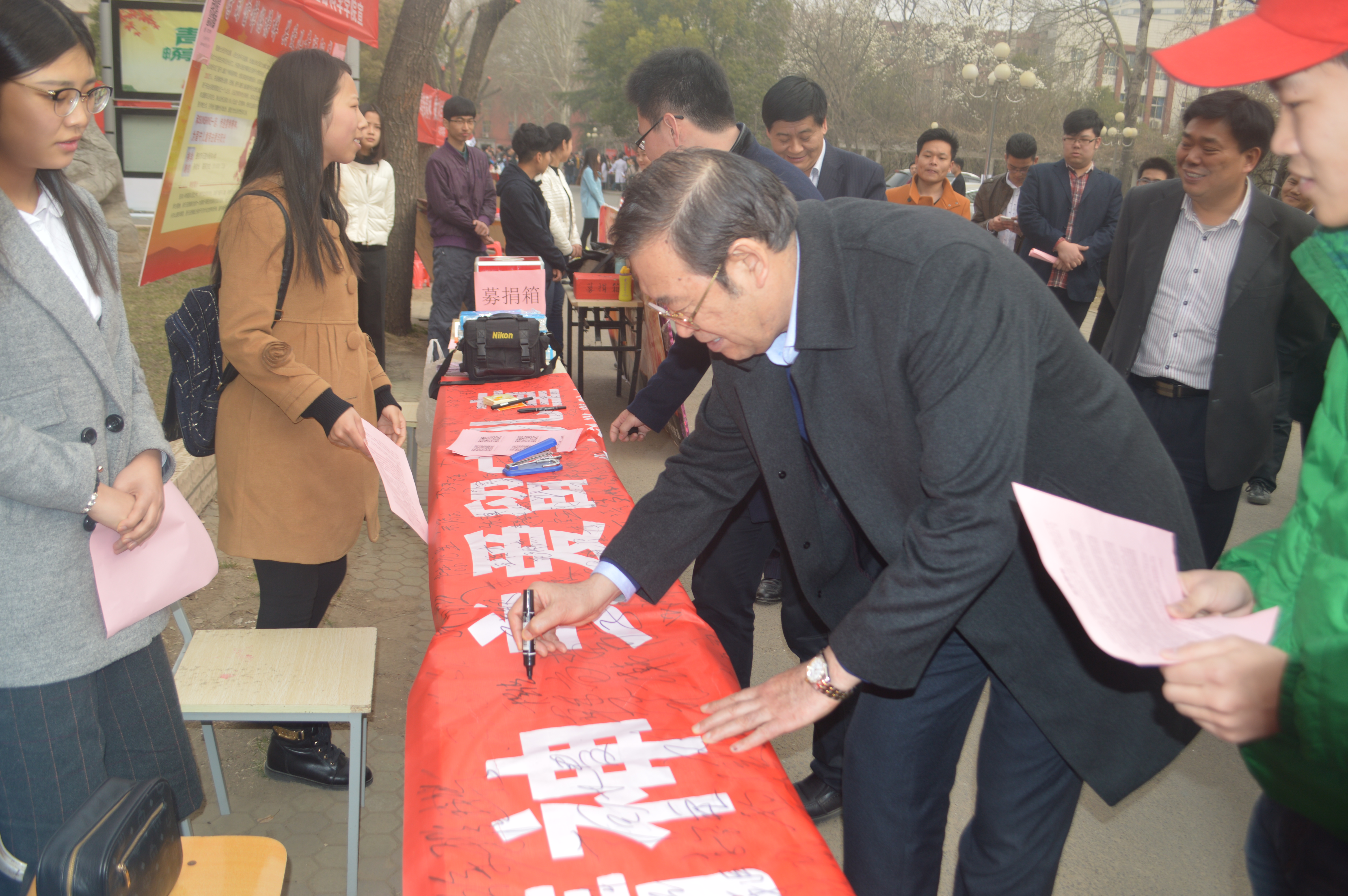 学生代表活动介绍后,纷纷在宣传条幅上签字,并为留守儿童捐出善款。校党委书记程传兴在接受采访中表示:在新时代下,雷锋精神永不过时,举办雷锋日活动是当代大学生弘扬雷锋精神,提高自我修养的重要体现。为留守儿童募捐,充分体现了无私奉献的雷锋精神,是学生们真正奉献爱心的体现。最后,程书记为樱花动漫