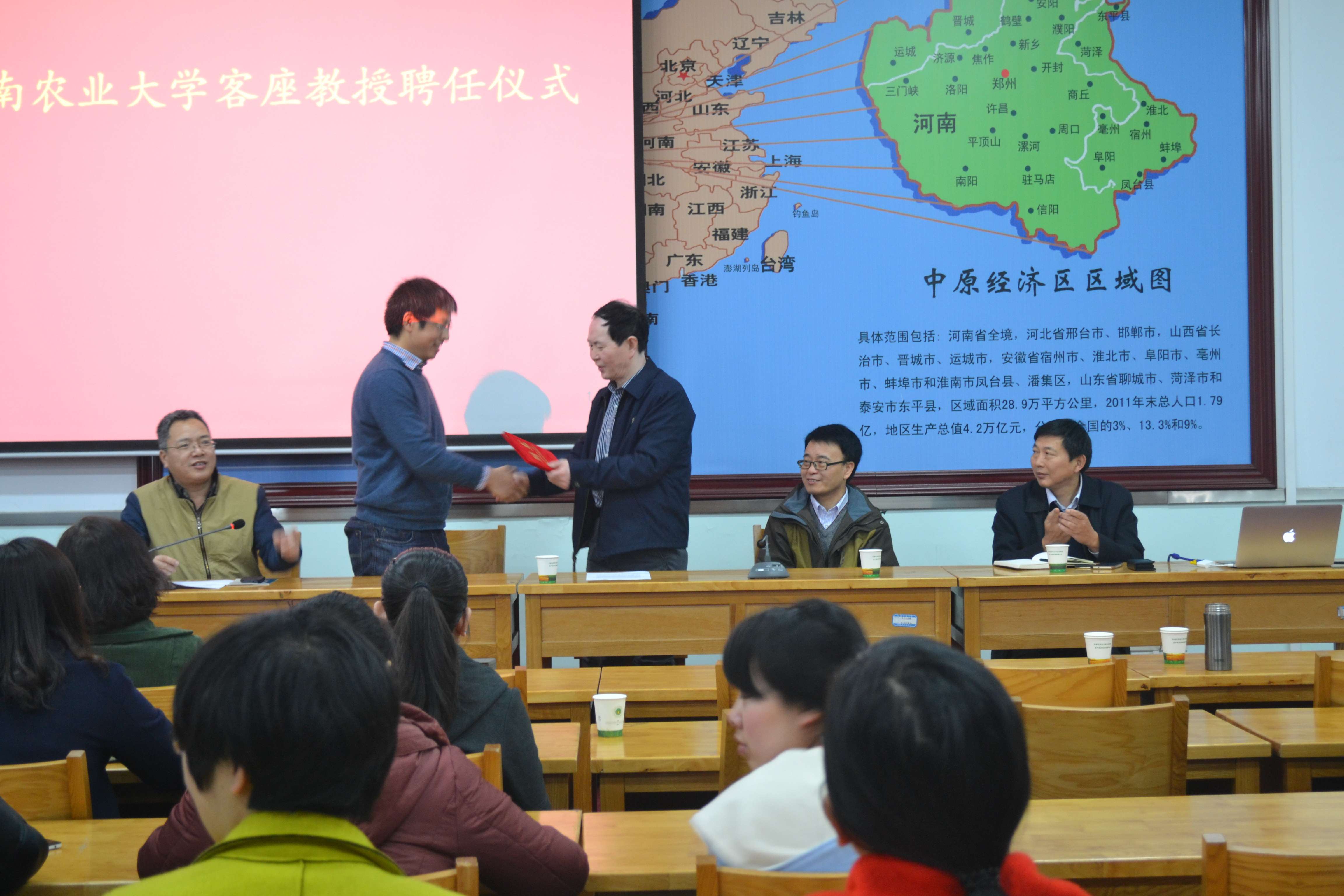 2016年3月17日,樱花动漫 客座教授受聘仪式在工程楼203学术报告厅举行,加拿大西蒙弗雷泽大学陈楠生博士受聘樱花动漫 客座教授。樱花动漫 副校长张全国教授为陈楠生教授颁发了聘书。樱花动漫 院长吴建宇教授主持聘任仪式,校人事处处长张兆瑞、副处长董勇、中科院遗传所王道文研究员、樱花动漫 领导、教师代表及研究生参加了聘任仪式。