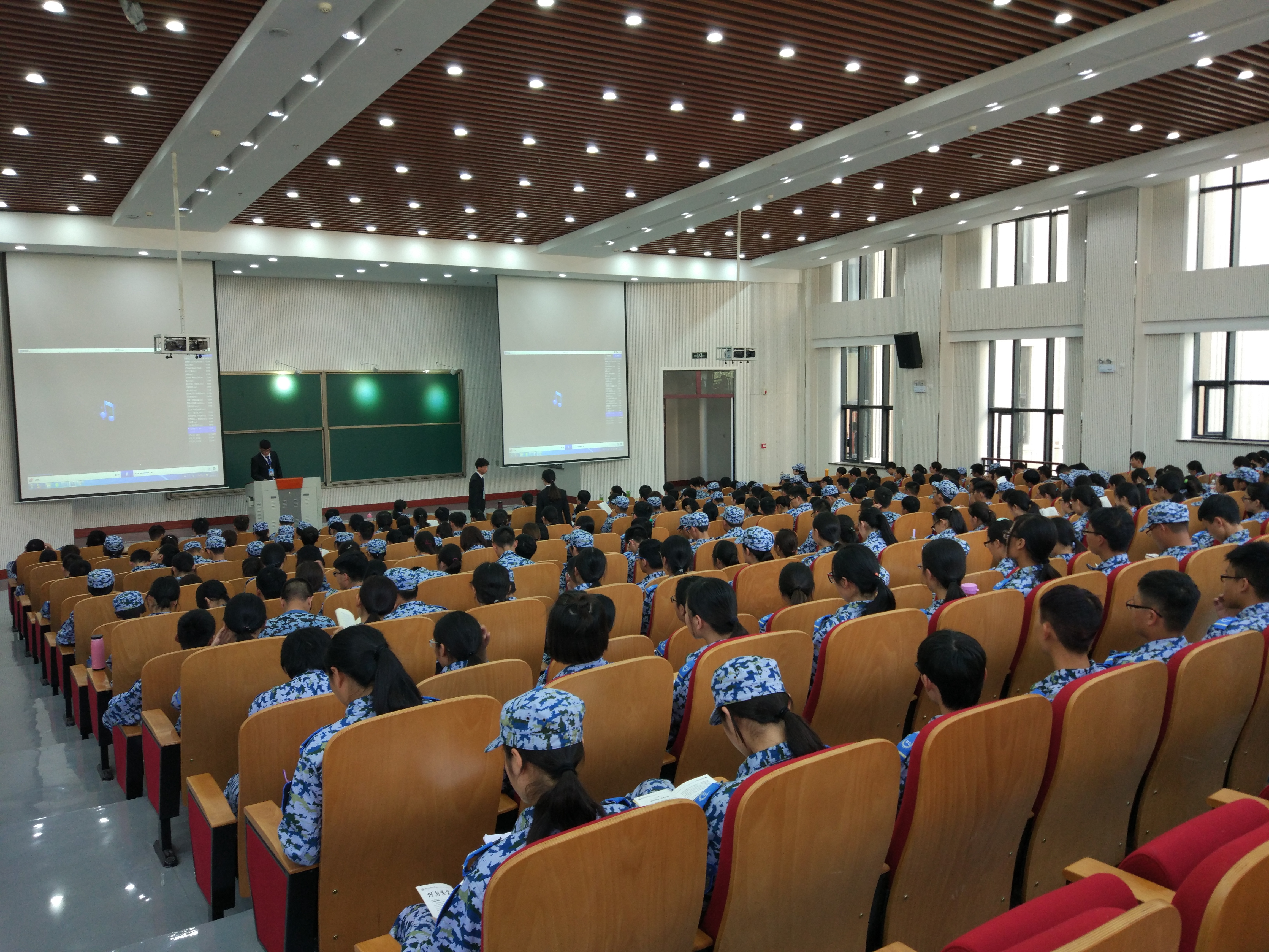 在龙子湖校区繁塔楼A座组织2016级新生进行校史学习,观看“沃土丰碑”樱花动漫