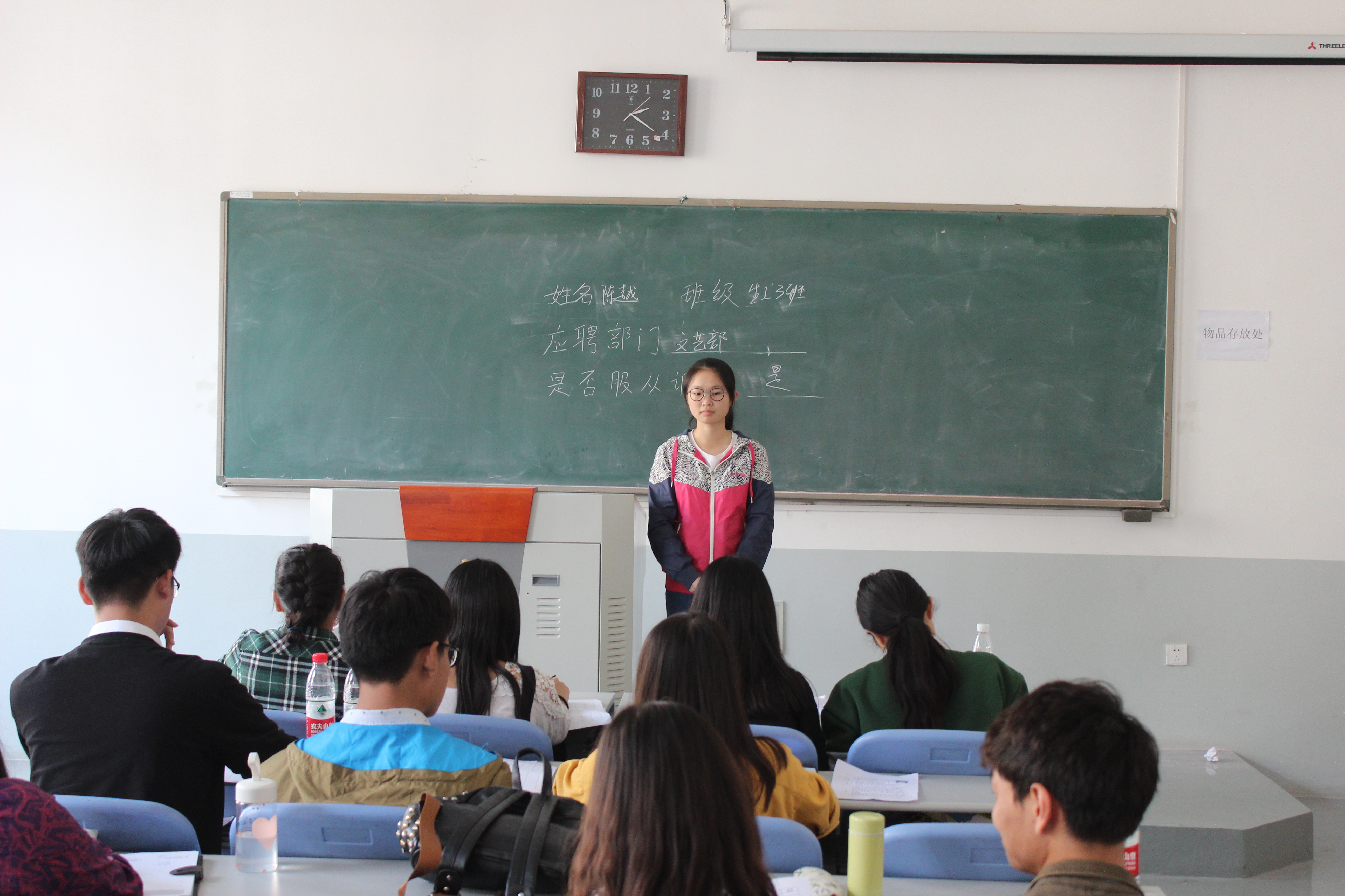 此次笔试工作的试题分别由学生会与记者团进行命题,同时积极组织16级新生参加笔试。笔试中学生们自觉遵守考试纪律;认真对待,规范答题。面试中负责招新的面试官们认真负责的对待此次招新活动,就学生工作的不同需求对16级新生们进行了不同方式的考察,以寻觅出最适合各个工作的人才。同时仔细听取新生的自我介绍,并提出合适的问题来考察新生处理问题的能力。与此同时,16级新生自信从容回答问题,言谈举止中流露出敢于表现自我的信心以及对待学生工作无限的热情与渴望。