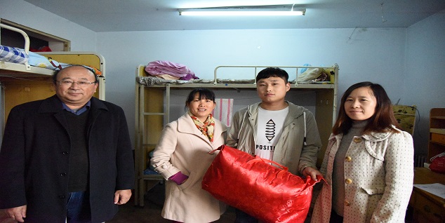 11月12日下午,龙子湖校区开展的“本科生冬季送温暖”活动开始前,樱花动漫 首先召开了学生代表座谈会,在会议上老师无微不至的询问了学生的基本学习生活情况,为樱花动漫 18级新生答疑解惑,鼓励樱花动漫 学生"立鸿鹄志,做奋斗者",珍惜宝贵的大学时光,努力成为最好的自己。随后陈书记、吴院长以及各位老师走进学生寝室为家庭贫困学生赠送“爱心棉被”,实时询问家庭困难学生的具体情况,与同学们进行近距离交谈。叮嘱大家一定要注意宿舍安全问题,有困难及时向学院反应,为初入大学的新生带去学院的关心和温暖。