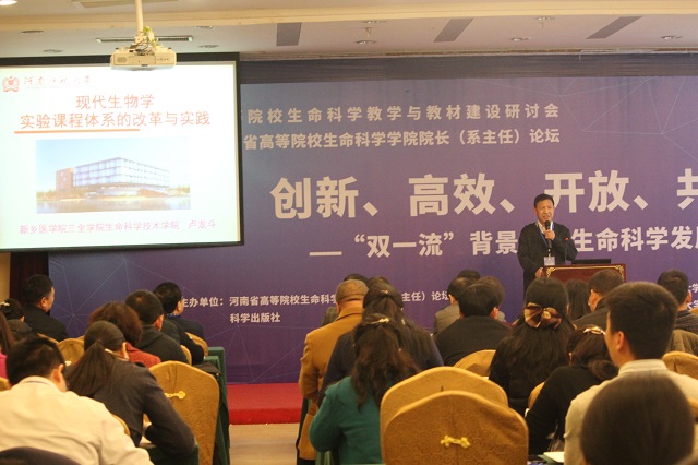 11月24日上午,卢龙斗教授应邀出席第十一届河南省高等院校生命科学院长论坛会议并作《现代生物学实验课程体系的改革与实践》的经验交流报告。他以新乡医学院三全学院生物与基础医学实验教学中心的建设与发展为例,从实验课程体系改革的背景、思路、原则、实践及效果等方面进行阐述。通过对普通生物学、微生物学、细胞生物学等核心课程的原有实验项目与更新实验项目进行对比,分析了存在的问题及解决问题的思路、成效,介绍了模块式教学在实验教学中的应用,使实践教学更加系统化、整体化。