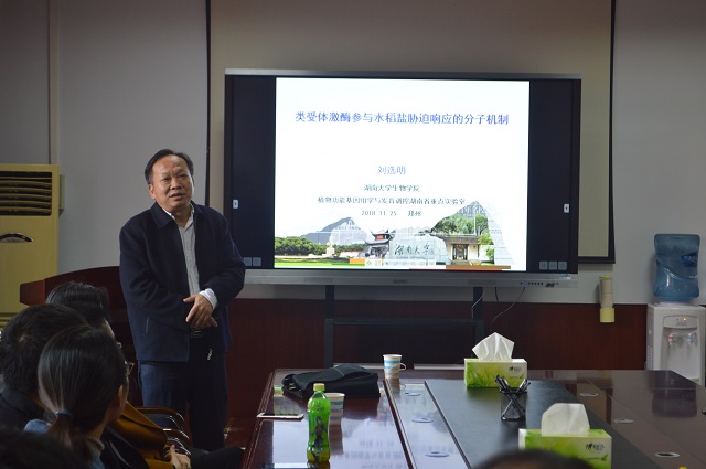 报告会后,刘选明教授与从事相关研究的师生就类受体激酶的作用机制、活性氧的信号调控途径以及作物的遗传转化等问题进行了深入的交流和讨论,详细解答了师生提出的问题,激发了同学们进行科学研究的积极性和主动性。