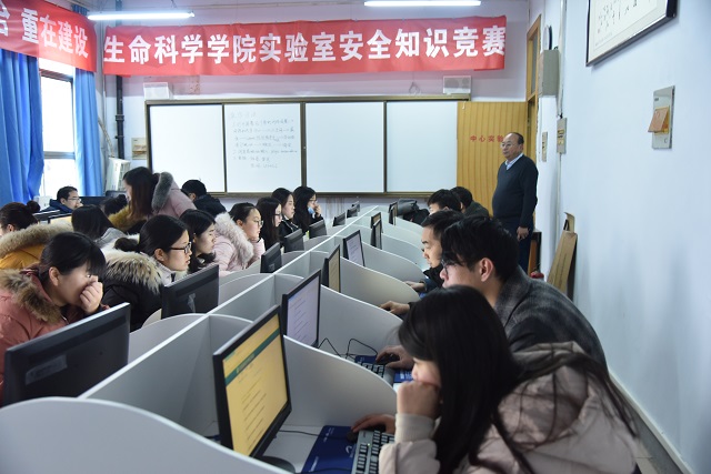 在1号楼205教室举办了实验室安全知识竞赛,2018级全体研究生参加竞赛。竞赛试题由网络系统自动生成,主要包括与实验室日常安全紧密相关的医学生物类、消防安全类等知识,涵盖了实验操作规范、危险的预防与处理、火灾逃生及自救常识等各个方面。同学们答题认真细致,全部按时完成了测试,成绩由系统现场打分,80%的同学成绩达到80分以上,李小艳、陆京徽、范新宇等13名成绩90分以上的同学获得竞赛优秀奖,展现了同学良好的安全知识储备。