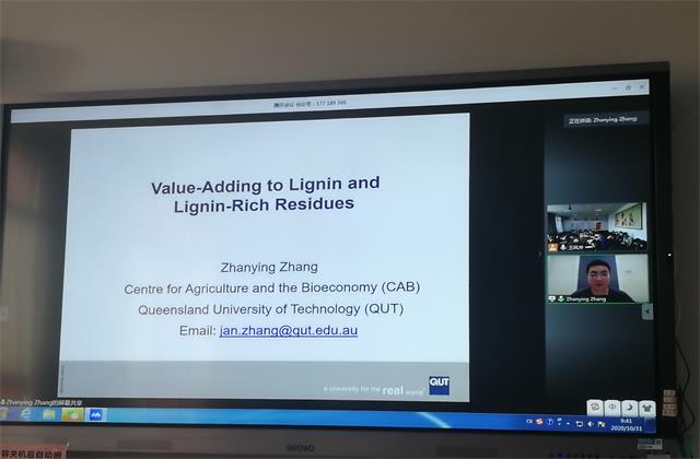 张占营博士首先以《Biorefining of Lignocellulosic Biomass Based on Acid-Catalysed Glycerol Pretreatment》为题,介绍了木质纤维素生物炼制中预处理技术的发展应用现状,其中着重介绍了甘油预处理在生物炼制领域的优势及其存在的问题。其课题组通过酸催化-甘油预处理的技术改进显著提高了预处理的效果,大大降低了甘油的用量,并以此为突破点开展了多方面的研究工作,取得了显著的成果。随后以《Value-Adding to Lignin and Lignin-Rich Residues》为题,聚焦于当前生物炼制领域非常热门的木质素高效利用问题,提出木质素优先的科研理念,通过对木质素提取技术的改进和优化,得到高品质的木质素产品,并对木质素产品未来的应用前景给出了自己的见解。