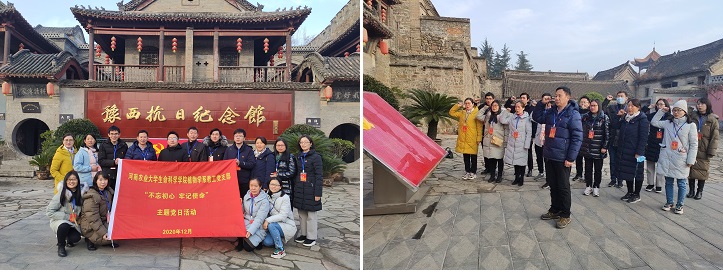为弘扬伟大抗战精神,激发党员干部爱国热情,让爱国主义成为全体党员履职尽责的精神力量,2020年12月6日,学院党委带领植物学系教工党支部党员前往豫西抗日根据地纪念馆开展“不忘初心、牢记使命”主题党日活动。