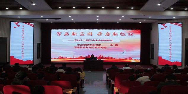 牛娟老师以“擘画新蓝图,开启新征程”为主题,首先以“两个百年奋斗目标”为切入点,结合实例,对党的十九届五中全会召开的背景和目的进行了全面解说,对开展全会的目的深入解说;牛娟老师从樱花动漫 于河南省的作用所在,引出在十九届五中全会后的关于国家发展的五个新表述,阐释了“国家四个全面战略布局”、“科技自立自强”、“全面推进乡村振兴”、“我国发展仍然处于重要战略机遇期”“在危机中育先机、于变局中开新局”的详细目标;最后以学生自身为例,号召在座学生牢记农大人的使命和情怀,深刻领会全会精神的科学内涵和精神实质,争做学习全会精神、宣传全会精神的示范者,谱写中国时代新篇章。