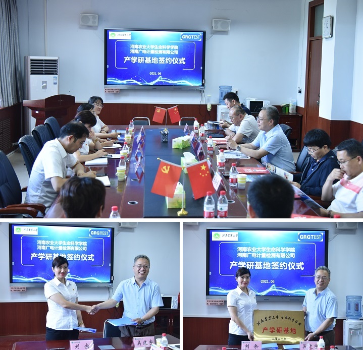 对产学研的相关诉求,对河南广电在食品、环境、土壤及理化分析检测等领域的技术优势做了详细阐述。在近两小时的签约仪式上,双方就科学研究、人才培养、学生就业及党建工作展开了深入而广泛的交流,达成了以此次“产学研基地”建设为契机,逐步建立全方位,多层次,高效务实的合作机制的共识。最终,生命学院与河南广电产学研基地顺利签约并授牌。