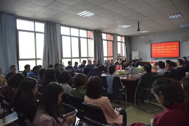 在1号楼309会议室召开学习宣传贯彻党的十九届四中全会精神和省委书记王国生来校与师生座谈时讲话精神专题会议,学院班子成员、全体教职工参加了会议,会议由院党委书记陈玲主持。