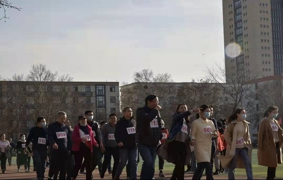 全体教职工大会结束后,全院教职工一起来到田径场开始健步走活动。此次活动既定行程目标两公里,即绕操场五圈。老师们或身姿矫健、快步前行,引得志愿者欢呼加油;或结伴而行、谈笑风生,同事之间相互交流工作生活经验。一团祥和喜气,激荡生命风采,樱花动漫