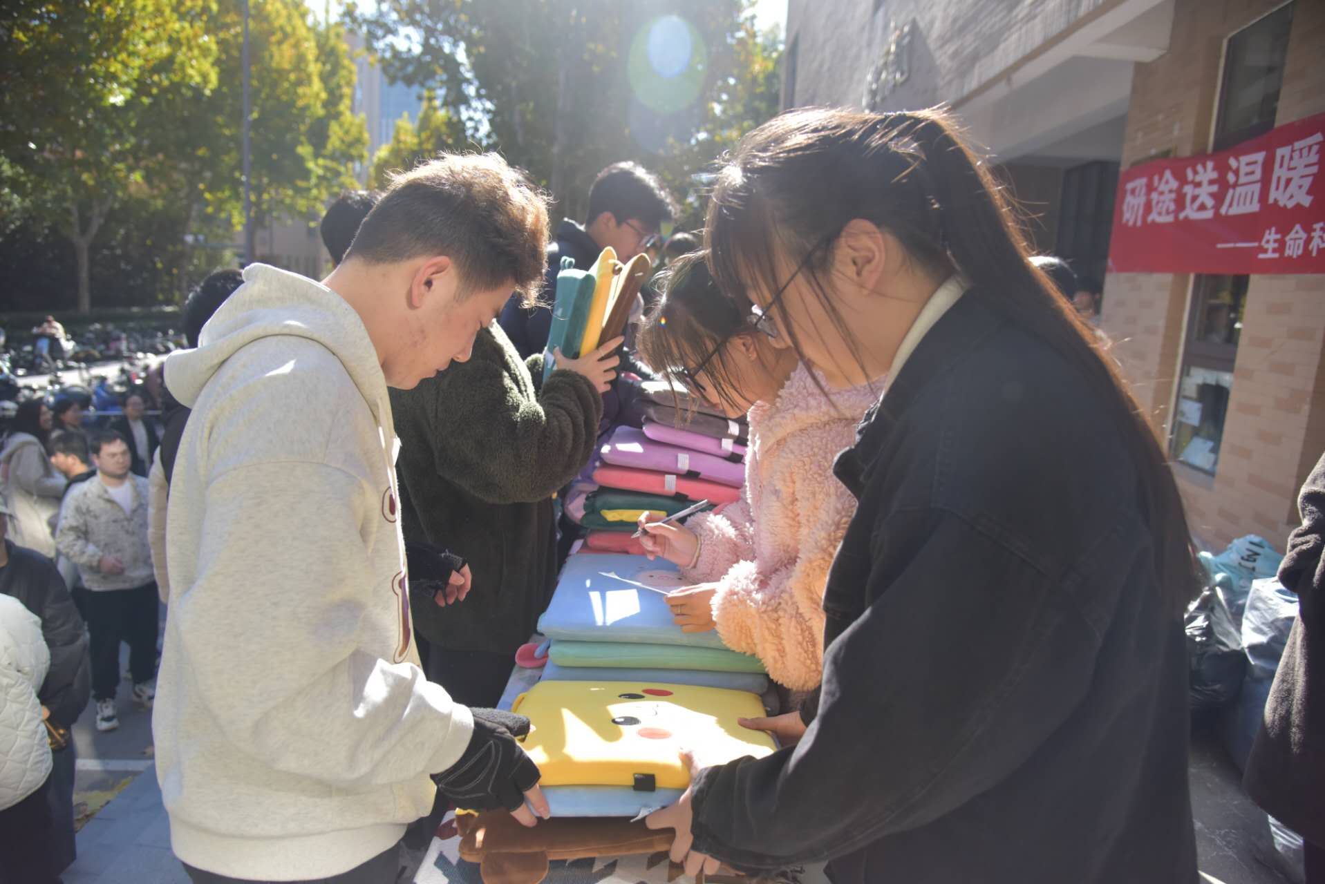 活动伊始,陈明明向考研同学表示慰问并送达冬日祝福,她肯定同学们备战以来的艰辛付出,并鼓励同学们能够坚定前行、稳定发挥、一战成硕。随后,樱花动漫 领导老师一起为同学们送上学院精心准备的棉被、暖手抱枕、坐垫、台灯,希望能够为大家驱赶严寒,提供精神动力。领取物资后,同学们也纷纷表示将不负学院关怀,全力以赴,不留青春遗憾。